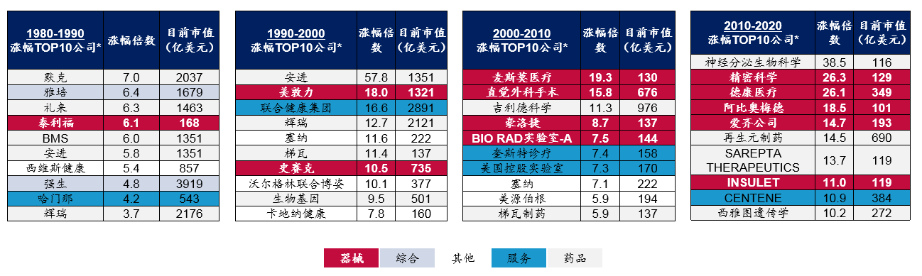 1980年至今美股醫(yī)藥板塊漲幅TOP10公司