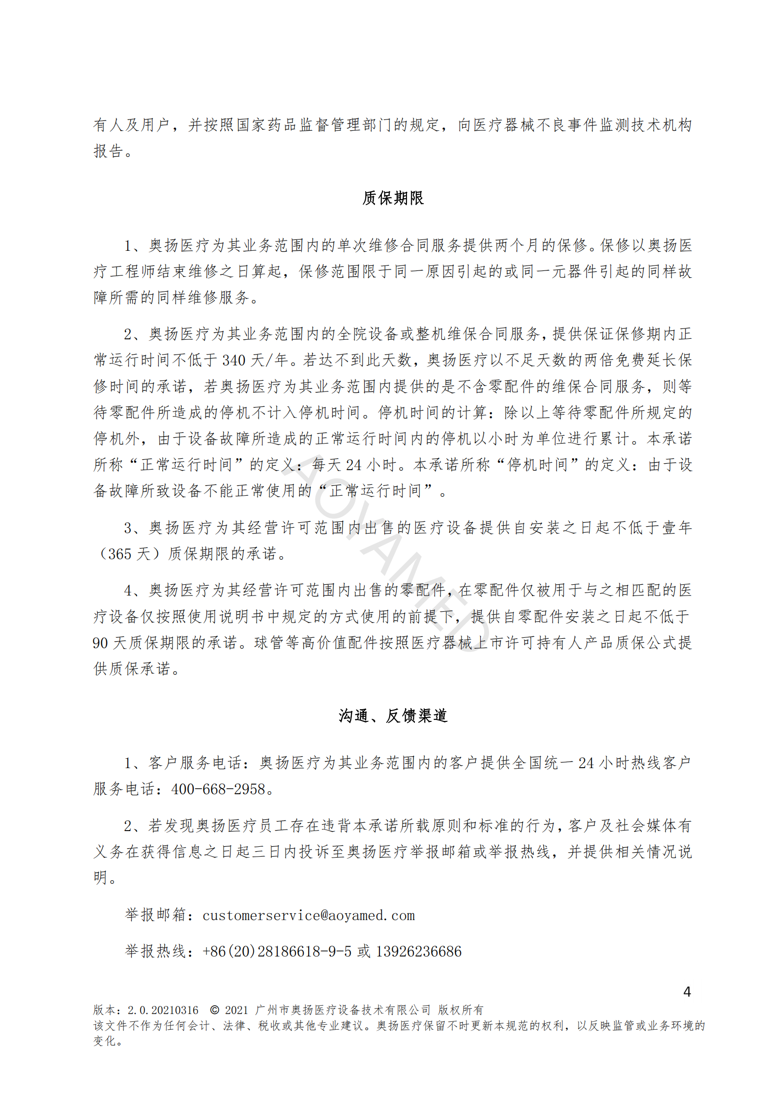 【奧揚(yáng)醫(yī)療】醫(yī)療設(shè)備維保服務(wù)承諾發(fā)布稿