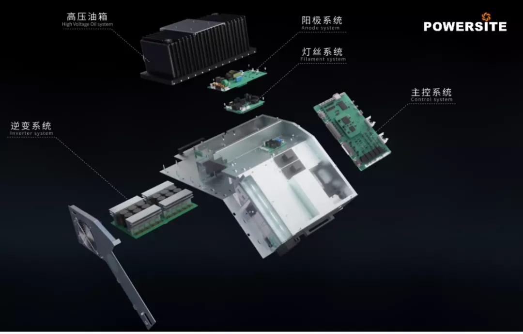 其中,博思得的PSG-CT系列主要應用于CT系統(tǒng),由控制箱(包含控制系統(tǒng)、逆變模塊、球管旋陽驅(qū)動電源以及燈絲驅(qū)動電源)和高壓油箱組成。采用MOSFET方案,輸出頻率高,油箱耐壓等級高,陽極采用變頻變壓無級驅(qū)動技術,可兼容各類球管,包括液態(tài)金屬軸承球管,支持陽極接地。特點包括: