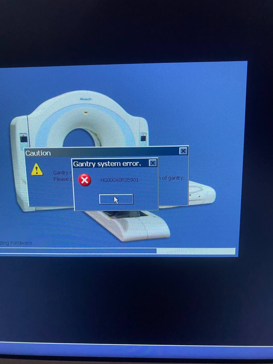設(shè)備不允許 X 射線管預(yù)熱;加載設(shè)備時(shí)出現(xiàn)錯(cuò)誤:“Gantry System Error HG000A0R05901”。