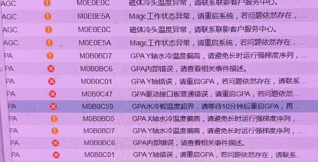 故障發(fā)生當(dāng)日,MR 設(shè)備在掃描過(guò)程中突然發(fā)出警報(bào),屏幕提示機(jī)器無(wú)法繼續(xù)掃描,報(bào)錯(cuò)信息直指梯度高溫。這一故障的出現(xiàn),不僅中斷了正在進(jìn)行的檢查,更可能導(dǎo)致后續(xù)患者預(yù)約的延誤,因此必須迅速排查并解決問(wèn)題。