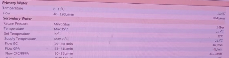 2、檢查溫度指標(biāo):仔細(xì)查看初級(jí)溫度和二級(jí)溫度顯示,發(fā)現(xiàn)均處于正常范圍(綠色標(biāo)識(shí)),未超過(guò)設(shè)備設(shè)定的閾值。這表明外部環(huán)境溫度暫未對(duì)設(shè)備造成直接影響,故障原因可能存在于其他環(huán)節(jié)。
