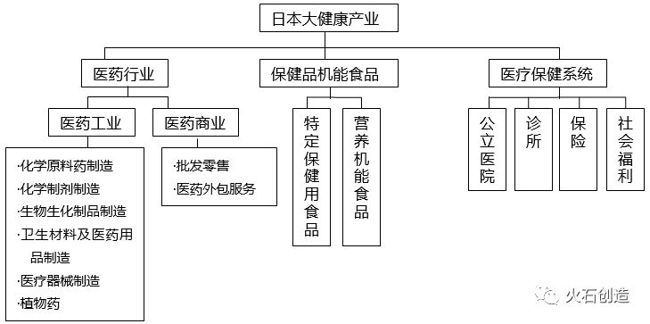 日本的大健康產(chǎn)業(yè)是集預(yù)防、診斷、治療、康復(fù)等商品和服務(wù)部門的總稱。通常包括醫(yī)藥行業(yè)、醫(yī)療保健系統(tǒng)、保健品行業(yè)以及社會福祉等領(lǐng)域。